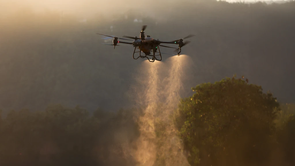 Nuestros drones DJI T100 permiten lograr aplicaciones de alta calidad con gotas finas y controladas, sin pisar el suelo.